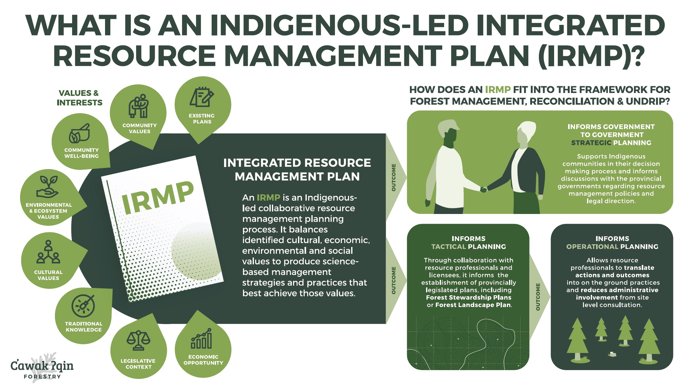 The TFL 44 IRMP will use the latest data, science and technology to create a common vision and direction for government-to-government land and resource management decisions. The plan will inform provincially-legislated processes such as forest landscape plans, old-growth management and on-the-ground operational planning to ensure long-lasting socio-economic, environmental and cultural benefits across the area.