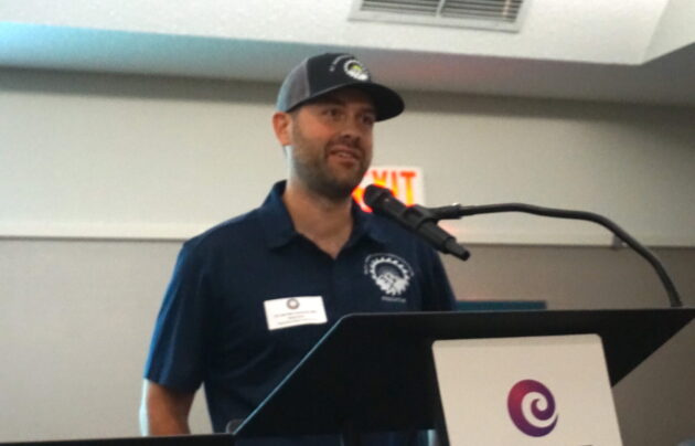 Reggie Hewitt, instructor at Thompson Rivers University’s (TRU) Williams Lake saw filing training centre closed out the conference with some updates about the sawfiler program and a call for donations.