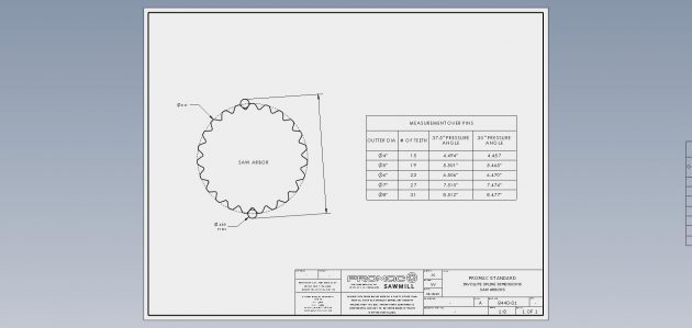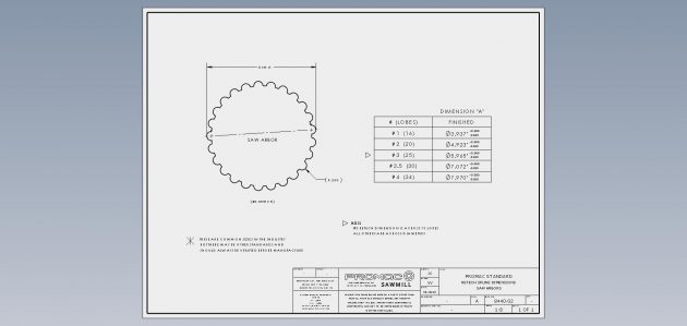 Another improvement was made with regards to the standards to produce involute splines. This brings us back to the Retech standards. Back in the early ‘70s, Retech published a set of standards including the maximum and minimum of the arbor spline, of which there are five. Each spline size is designated by a # sign followed by a digit. They are #1, #2, #3, #3.5, #4 and #5 (see Retech standards diagram). Due to the manufacturing processes available at the time, these standards allowed for a very wide tolerance. It was not uncommon to have a 0.030-inch clearance between the arbor and saw spline, and even a 0.040-inch clearance was within specification. In an effort to tighten up the tolerances, people came up with their own standards. This was done by increasing the arbor diameter or decreasing the saw eye diameter. So, what you could end up with was saws that were too tight or, in many cases, too small and would not even fit on the arbor. When the saw filer called the arbor manufacturer to inquire about it, he would be told it must be the saws that are wrong. When he called the saw supplier, he would be told that the arbor was wrong.