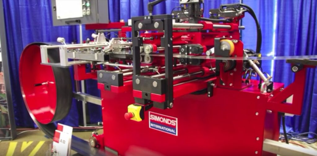 Photo: Annex Business Media Simonds International had its 095 AB automated bench on display at the BC Saw Filers Association convention in Kamloops, B.C., last week. Dave Purinton, vice-president of marketing for Simonds, outlines the features of the 095 AB, which includes an industrial touch screen with several interactive menus that show real-time results of the condition of the saw that can be compared to a set standard.