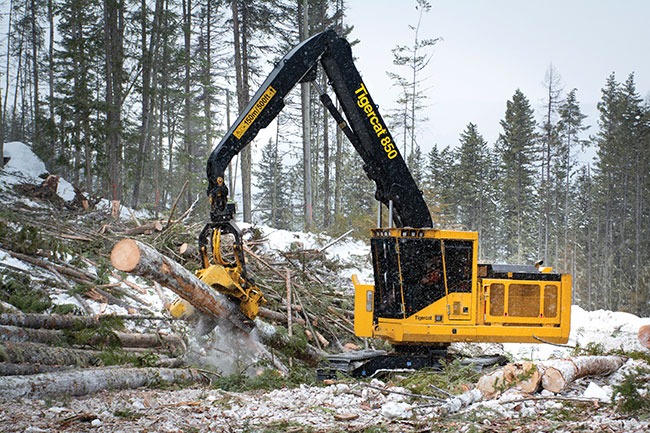 “I was impressed. It’s amazing what they’re doing there. It’s a factory with a customer touch,” he says. “A lot of the factories I’ve been to, they’re mass-producing excavators. You’re just getting what everybody is getting. You walk into Tigercat and you can see your machine. There’s a good chance I was climbing through the frame of our 850 when it was still steel. As for the head, I think we determined we were watching ours being built when we were there.