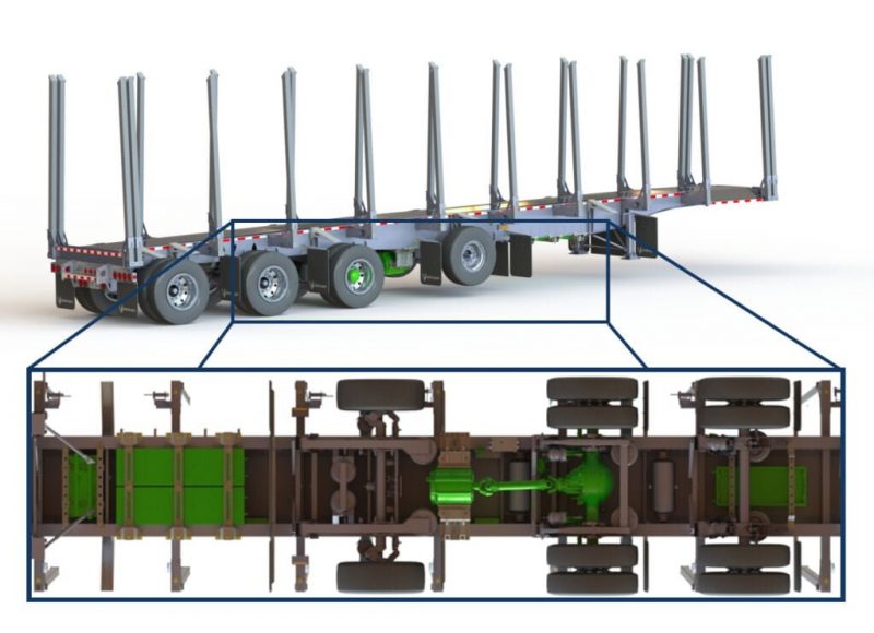 The system is being developed in partnership with two of Canada’s leading trailer manufacturers: Deloupe and TYCROP Trailers. LTS Marine, a leading hybrid and electric powertrain supplier, is supplying the electric propulsion system and is also supporting its development and testing. The electric system’s thermal management will be optimized by components supplied by Grayson Thermal Systems. Promark Electronics will play a key role in developing and providing a prototype harness for the system. The powertrain is composed of a Meritor axle with differential lock and an electric motor from Dana TM4. For superior performance, the trailers are fitted entirely with tires provided by Michelin and chosen with their support. Hendrickson is providing a truck suspension and is also supporting its unique integration onto a forestry trailer, alongside Hendrickson trailer suspensions. Moreover, the technology’s directed end-users will also be contributing to the development and testing; these include Arrow Transportation Systems, Boisaco, and Star Express. For testing in Quebec, Mack Ste-Foy will be providing bespoke trucks specifically configured for logging operations. Before in-field testing, PMG Technologies will be supporting controlled testing at the Motor Vehicle Test Center in Blainville, Que.