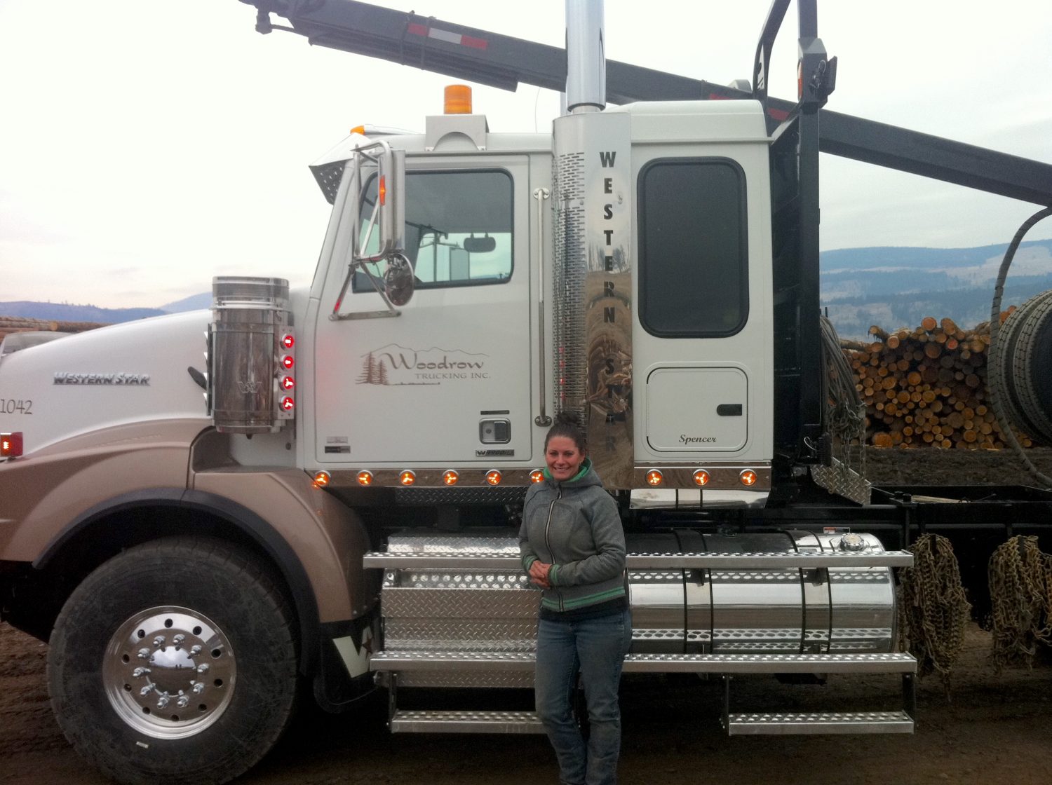 Growing up, my uncle hauled logs in Cranbrook and I can always remember milling around, watching a bit of it, but never put a whole lot of thought in it. When I was 22, an opportunity came up for me to buy a truck. I started asking around and realizing that, as a female wanting to enter the business, it wasn’t really heard of much in our area. There were one or two girls who trucked with their dads, but I was a no name coming into the industry.